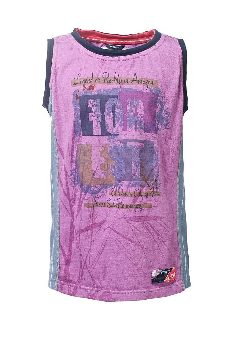 Футболка без рукавов Sarabanda великолепно дополнит оригинальный стиль благодаря своей выразительной расцветке с ипользованием темно-розового фона, а также сиреневого и зеленого тонов принта, размещенного на груди. Не требует деликатной стирки.
